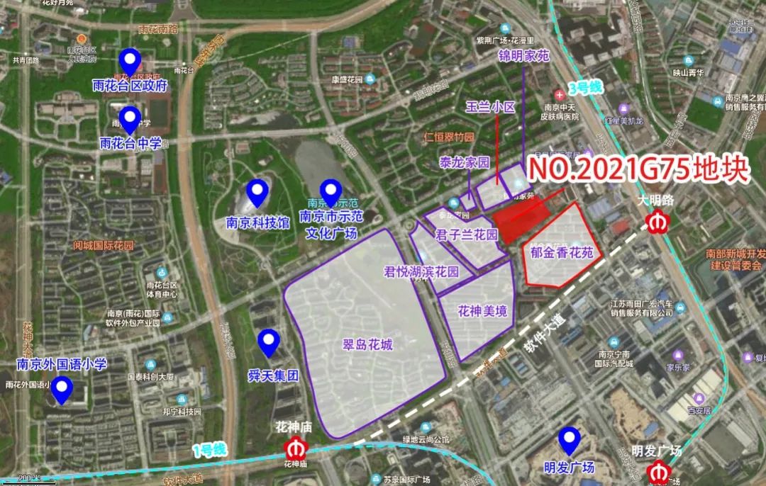 龙湖G75地块位于中国(南京)软件谷,北至玉兰小区、西至君子兰花园,南至郁金香花苑,东至宁南小学。