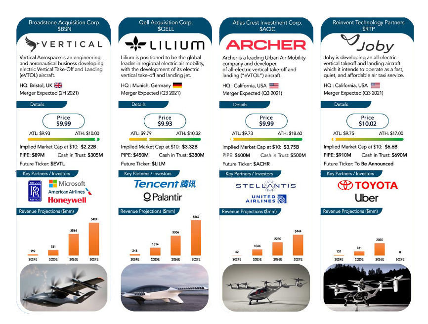 仅仅Joby、Archer和Lilium这三家公司通过SPAC上市,就在二级市场筹集了超过25亿美元的资金。