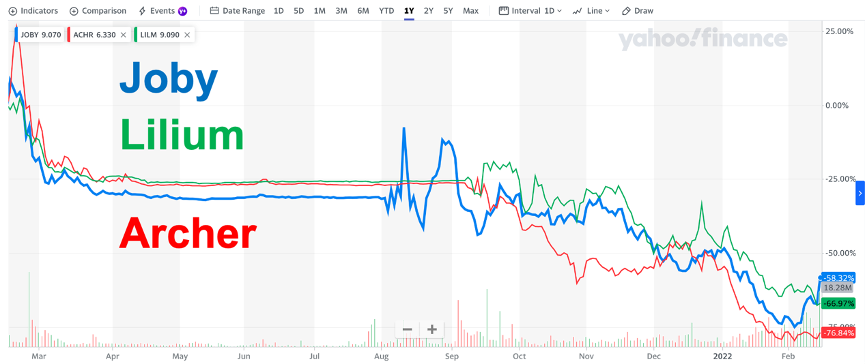 Joby (NYSE: JOBY) 率先于去年2月宣布通过SPAC上市。在随后的几个月里,包括Vertical Aerospace (NYSE: EVTL)、Lilium (NASDAQ: LILM) 和Archer Aviation (NYSE: ACHR) 在内的其他 eVTOL 初创企业纷纷跟进。