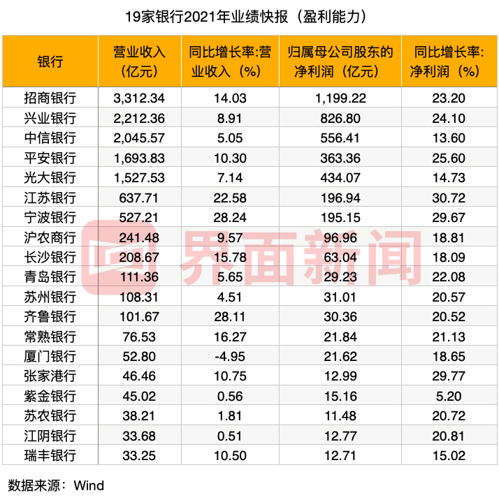 银行的业绩快报接踵而来。