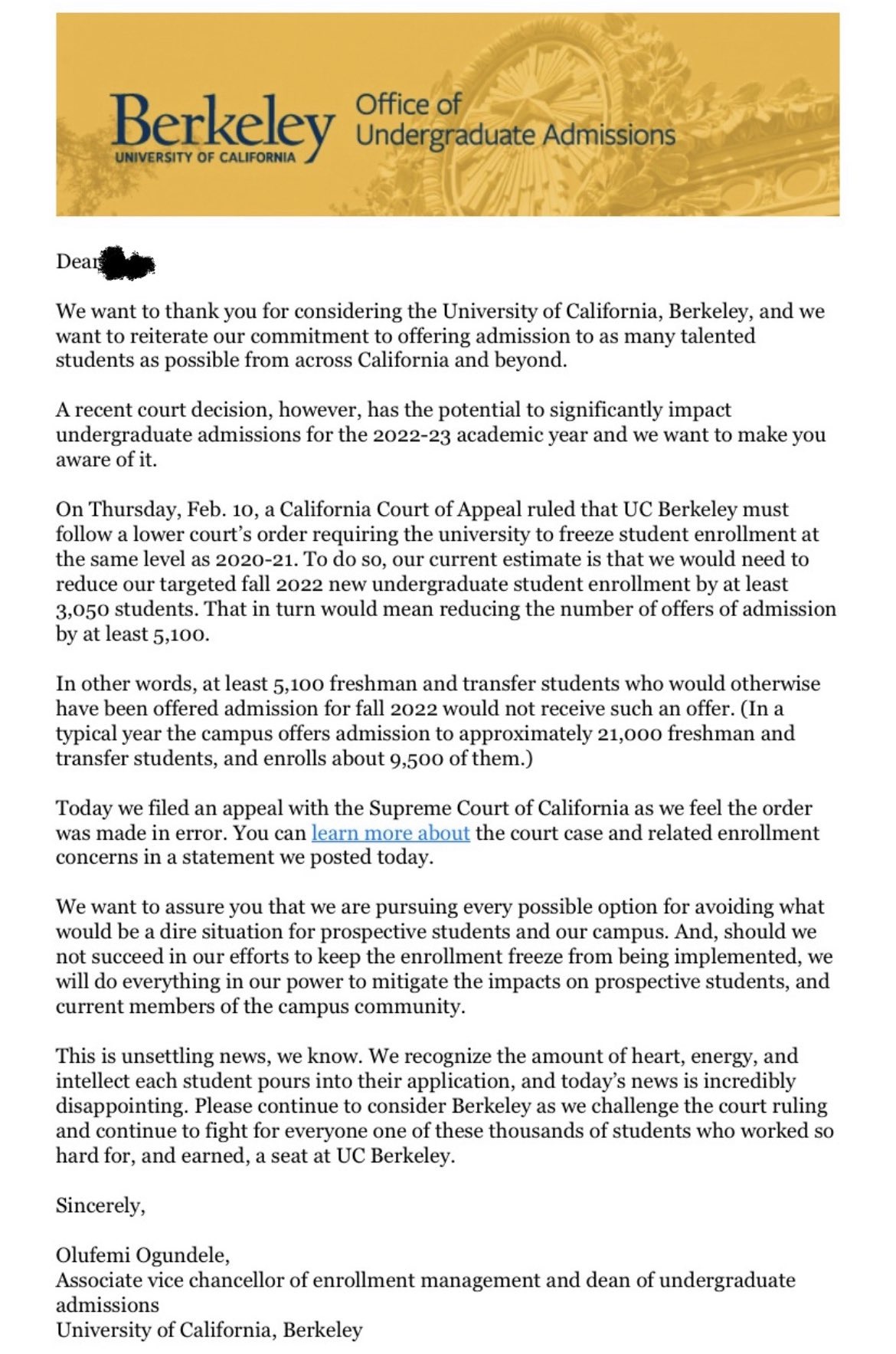 去年6月,当地法院判决伯克利从2022/23学年起冻结招生规模,入学人数不得超过2020/21学年水平。校方对该裁决提出上诉,但在上周,法院拒绝了这一请求。日前伯克利已再次向加州最高法院提出上诉,请求驳回冻结招生。