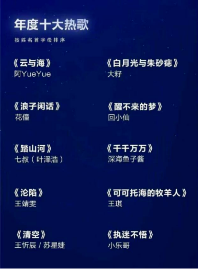 TMEA腾讯音乐娱乐盛典公布的“年度十大热歌”