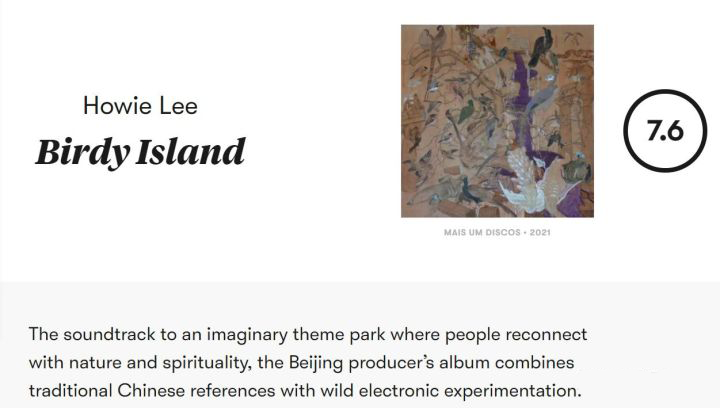 知名乐评网站Pitchfork评价其专辑《鸟岛》称,这张北京制作人的专辑将传统的中国元素与狂热的电子元素结合在一起,这就像是一个想象中主题公园的配乐,人们在这里重新将自然和精神进行连接。