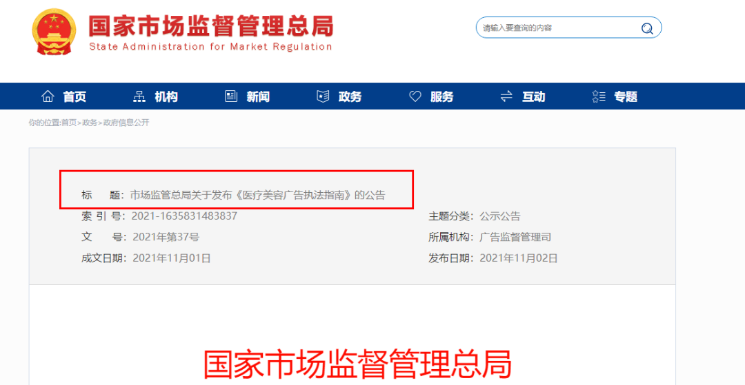 譬如,2021年11月2日,国家市场监督管理总局发布了关于《医疗美容广告执法指南》(下称《指南》)的公告。旨在严厉打击虚假违法医疗美容广告,这对于保护消费者合法权益、维护人民群众身体健康和生命安全意义重大。