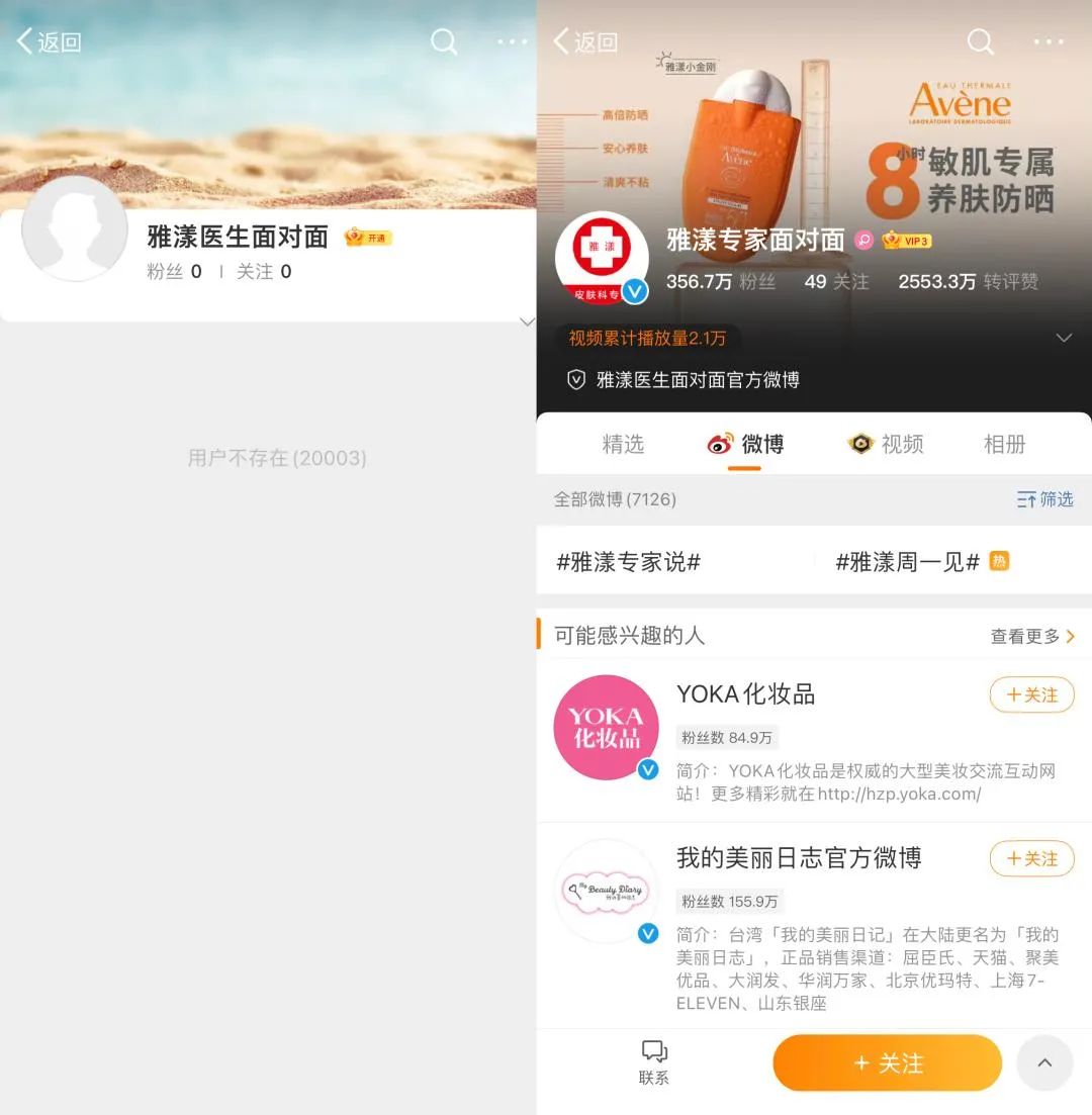 具体来看,是“雅漾医生面对面”微博中发布了一则宣传图文,内容宣称“雅漾活泉水经体外及临床研究验证具有舒缓、抗炎、抗刺激的功效……”等内容。现在微博已无法搜索到该账号,C2CC传媒查询后发现,“雅漾医生面对面”官方微博以挂着皮肤科专家头像的“雅漾专家面对面”的面貌出现,希望在“被罚”后的雅漾、皮尔法伯在中国市场发展时能够遵循相关的监管规定。