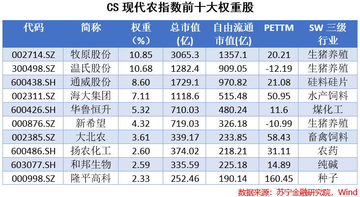 以两个指数的对比来看,毫无疑问是CS现代农的表现更具弹性,市场也更加认可其高成长性,相应的估值也更高。且CS现代农指数覆盖的标的更广泛,因此,本文以CS现代农指数作为分析标的。