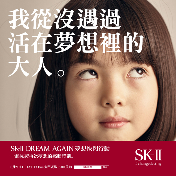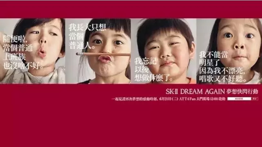 看看,梦想牌如果打得好,还是能达到品牌宣传的效果。这次SK-II怎么就玩出了尴尬感呢?这不能怪主题本身。实际上,这家日本品牌是在全球范围内发起的梦想主题营销活动,他们希望品牌内涵在“改变命运”的基础上再丰富一些,所以增加了这次“Dream Again”的宣传。