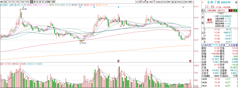 消息公布后,2月17日金种子酒股价直接一字涨停板。需要注意的是,就在16日午后开盘,金种子酒股价便出现异动直至封死涨停,市场质疑有消息提前泄露嫌疑,但金种子酒却予以否认。