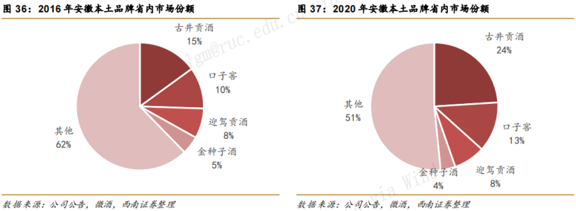 同时金种子酒是典型的区域性白酒,以中低端酒为主。在各大酒企纷纷发力全国化背景下,金种子酒想要走出去十分困难,2020年省内占比高达85.06%。 随着“茅五泸”等川黔强品牌不断入侵,以及洋河股份(002304.SZ)、今世缘(603369.SH)等传统“劲邻”的蚕食,徽酒省内市场更趋于白热化,如果不采取主动进攻措施,较为弱势金种子酒生存环境必将不断恶化。 因此可以想象,引入外部战投已经到了迫在眉睫的地步。