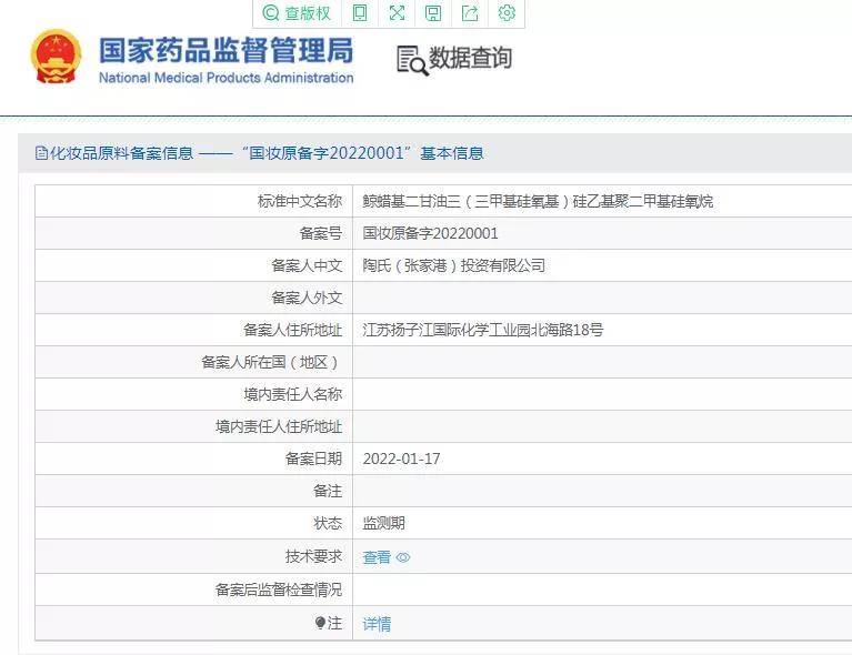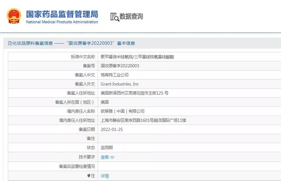 值得一提的是,陶氏(张家港)投资有限公司系美国陶氏硅业股份有限公司旗下子公司;而甲基倍半硅氧烷/三甲基硅烷氧基硅酸酯新原料的境内责任人则是欧莱雅(中国)有限公司。综上可见,外资企业也在积极申报化妆品新原料,抢夺未来市场。
