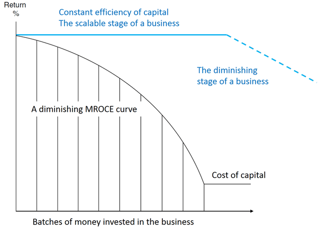 除了ROCE,一个同样重要的概念是所用资本的边际回报(MROCE)。关于MROCE的详细背景信息可以在我之前的文章中找到。这里提供了一个简短的摘要,以方便对这个概念不熟悉的读者进行讨论。