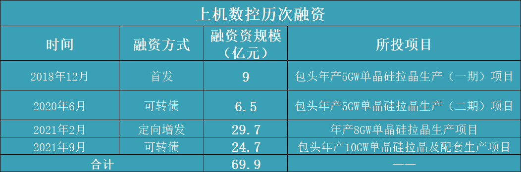 公司先是更改IPO募资用途用于硅片生产,而后通过可转债、定向增发共计从A股捞金70亿元投入其中。