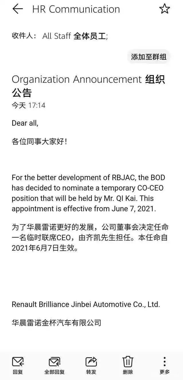 该人士还举例称,华晨雷诺的多位大区负责人和售后服务负责人,均在这种情况下离开了企业。