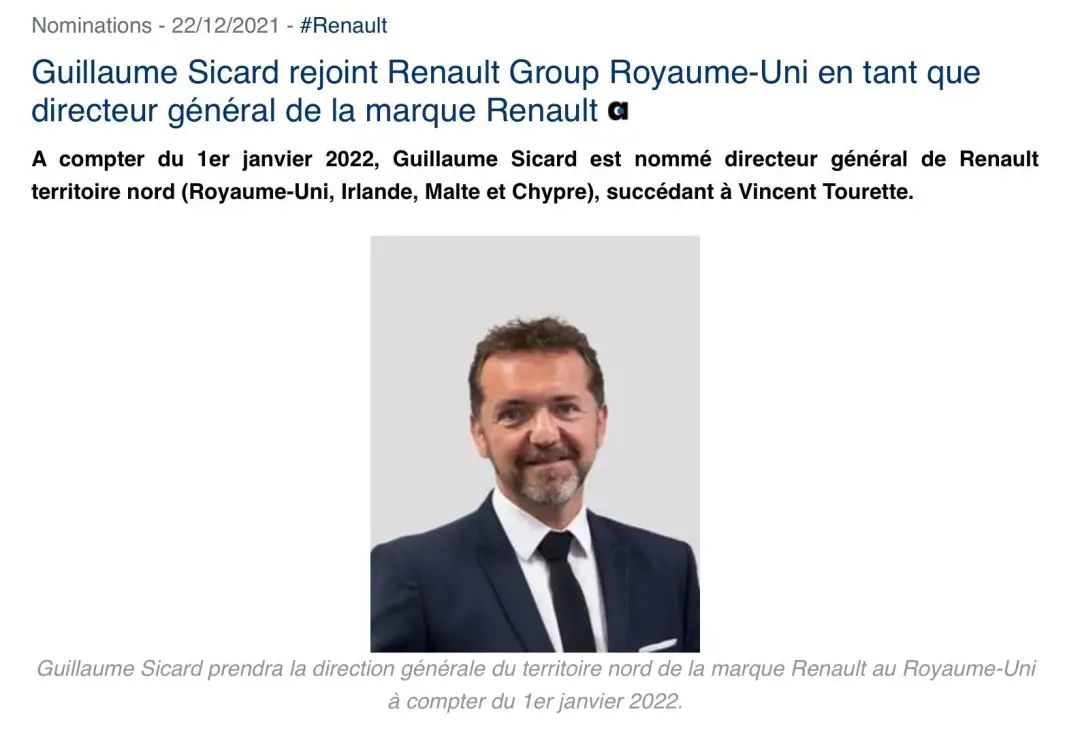施戈迈出任雷诺英国市场负责人及董事总经理