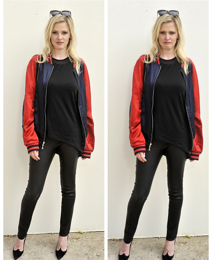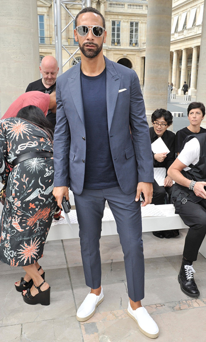而另一位美女模特劳拉·斯通(Lara Stone)穿了一件运动风的红袖飞行员夹克,十分惊艳。她上身内搭了一件宽松的黑色T恤,穿了一条紧身皮裤和一双高跟鞋,展现出一双大长腿。这位32岁的荷兰名模的妆容也很简单,头发随意披散着。此外,足球明星里奥·费迪南德(Rio Ferdinand)也出席了这一众星云集的活动。穿了一件简单的水手领上衣和一件深蓝外套的他显得衣冠楚楚。