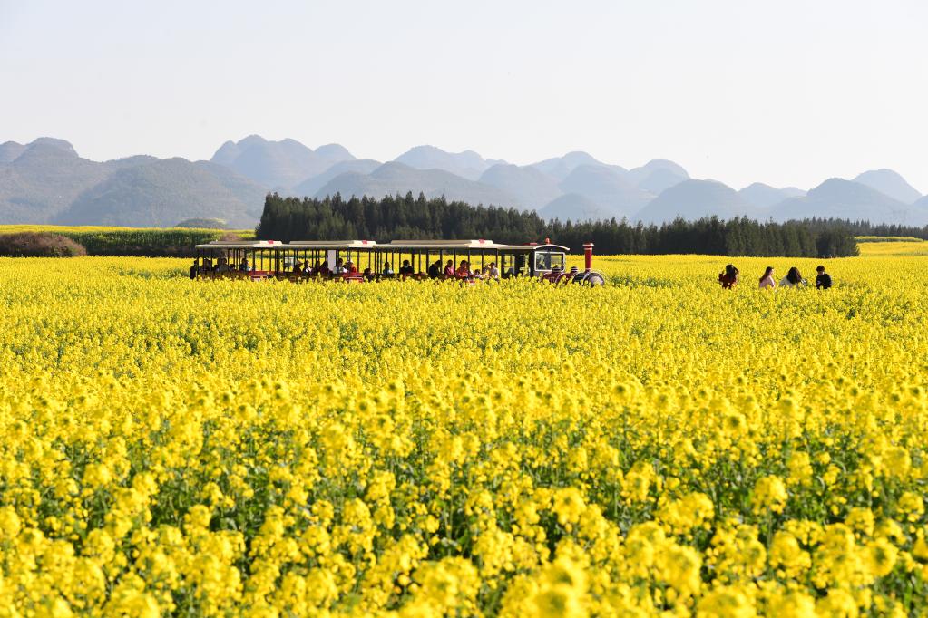 近日,云南省罗平县大面积油菜花开放,散发浓浓春意。新华社发(毛虹摄)