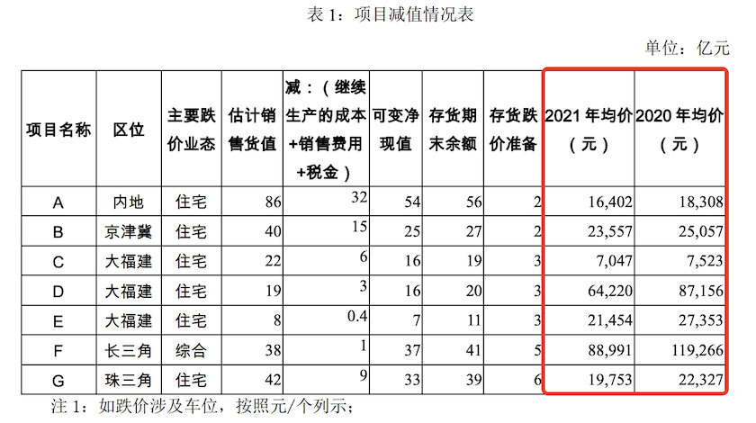 这个卖房成绩已经建立在阳光城多个楼盘都在大力打折的基础上。以珠三角的一项总货值超过150亿元的项目为例,阳光城将该楼盘每平方米均价由2.23万下降至1.98万,导致售价无法覆盖项目成本,整个楼盘预计跌价6.3亿元。阳光城公告显示,2021年阳光城有7个项目跌价金额在2亿元以上。