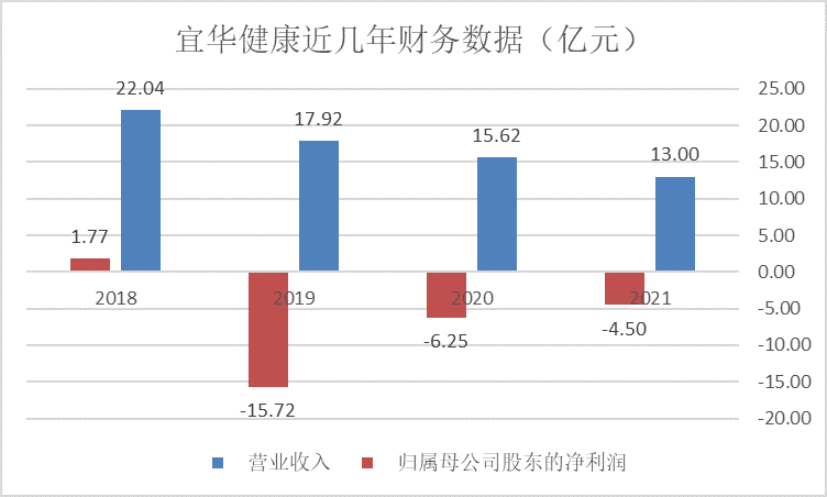 业绩预告显示,宜华健康预计2021年实现归属于上市公司股东的净利润为-3.6亿元至-5.4亿元,亏损幅度有所收窄。这已是公司连续第三年净利润为负。