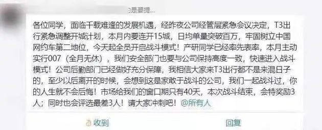 有网传截图显示,T3出行将此视为“千载难逢的发展机遇”,去年7月紧急决定当月连开15城,目标是“日均单量突破百万”;美团打车则给新客价值128元的打车红包,内含9张优惠券。在抖音、微信各平台,各大打车平台的大字广告不断闪现,“新用户打车低至1元,100元打车券免费领取”。