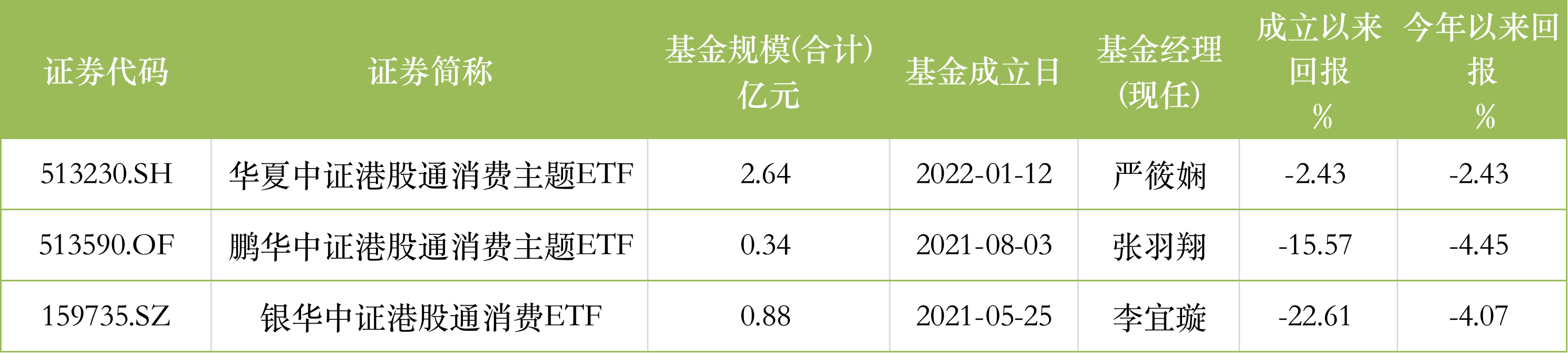 目前全市场跟踪该指数的ETF总共有3只,其中华夏中证港股通消费主题ETF规模最大为2.64亿元。此外,易方达中证港股通消费主题ETF于去年12月10开始募集,目前距离募集截止日也仅剩半个月左右。
