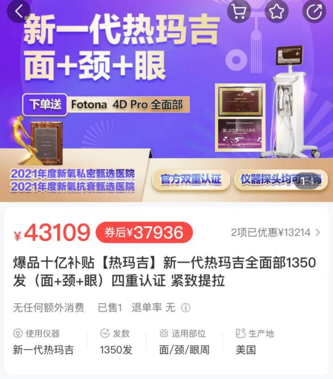 但这玩意价格令人咋舌——购买一台五代热玛吉的设备需要百万元左右,这笔支出只有较大医美医院愿意承担,很多中小医美机构只能按单次或按天去租赁设备。即便如此,热玛吉设备还是卖到了断货。此前上海第九人民医院皮肤科主任徐慧接受央视新闻采访时表示,可能原厂也没有想到,我们中国方面会有这么大的需求量,所以它产能跟不上。一些机构、医院订货以后,等一年都等不到机器,耗材的缺口相当大。