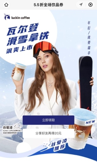 去年9月,瑞幸便正式官宣谷爱凌成为品牌形象代言人,并推出谷爱凌定制新品瑞幸瓦尔登滑雪拿铁和蓝丝绒飒雪拿铁。