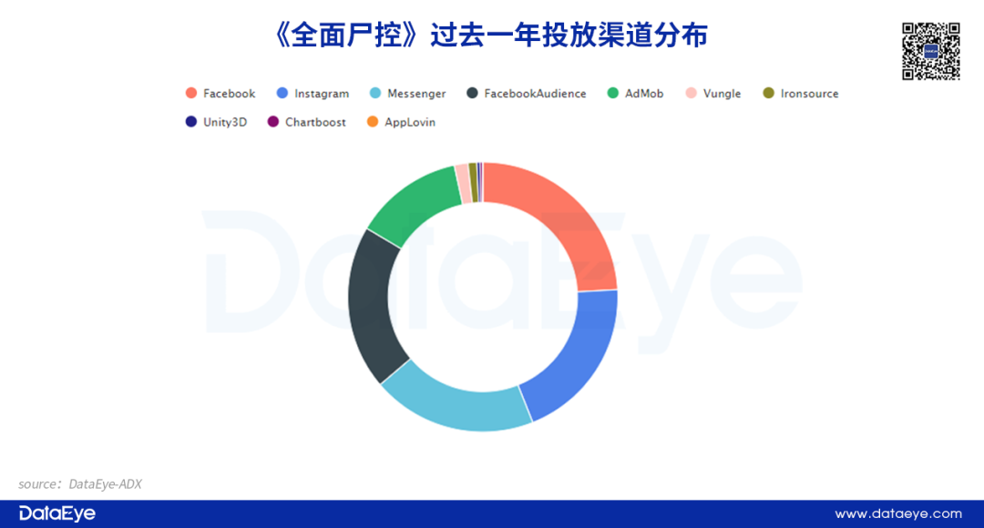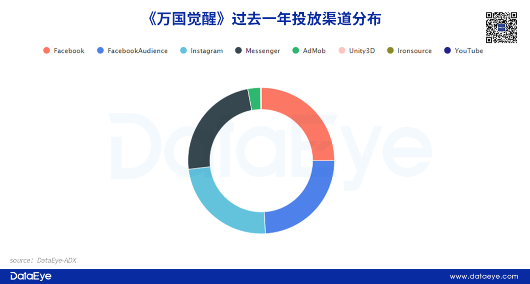 买量渠道:Facebook系平台是主流渠道。四款SLG同样选择以Facebook作为主投渠道,如果算上Instagram(Facebook旗下平台),这个美国社交媒体巨头几乎饱和了超过90%的投放资源。