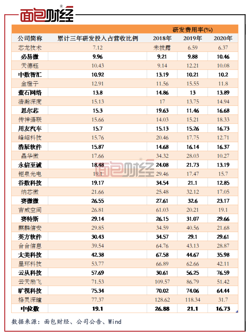 研发强度对比:芯龙技术、必易微、天德钰垫底