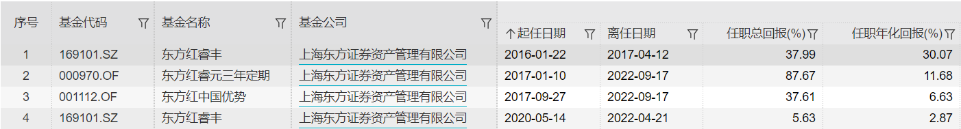 Wind数据显示,自2016年1月首次参与管理基金产品以来,韩冬在东方红资管任职期间先后4次出任过3只产品的基金经理,其中任期最长的“东方红睿元三年定期”在其近六年的任期内总回报率为87.67%,年化回报率为11.68%。