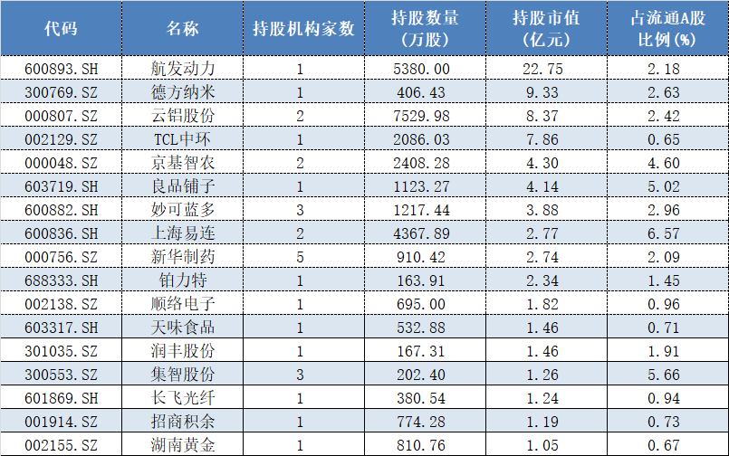 Wind数据显示,截至4月3日已披露年报的A股上市公司中,共有74家前十大流通股东中有私募新进的身影,合计持仓市值达97.46亿元,其中17家私募新进持仓的市值超过了1亿元,高居榜首的航发动力(600893.SH)被持仓的市值更是高达22.75亿元。