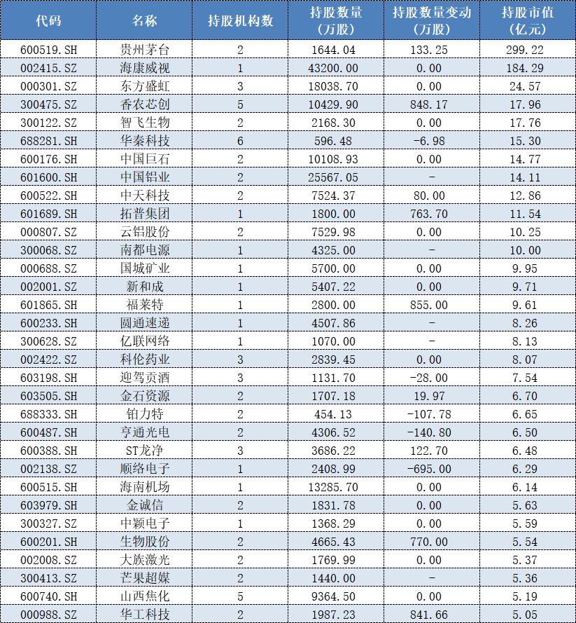 此外,多家私募抱团持有的香农芯创(300475.SZ)、迎水投资的重仓股智飞生物(300122.SZ)、和沣资产和高毅资产携手豪买的华秦科技(688281.SH)以及邓晓峰重仓持有的中国巨石(600176.SH)等今年一季报时被私募持仓的市值也均排名居前。