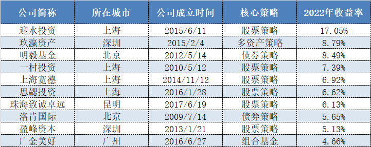 表格:2022年度百亿私募收益前十榜单