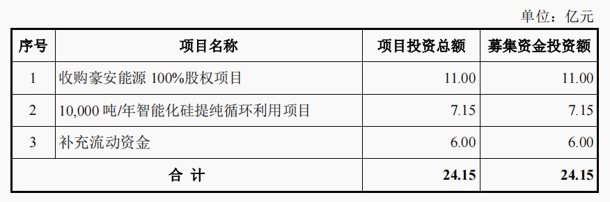该非公开发行股份预案显示,拟发行不超过10,279万股(含),所募资金总额不超过24.15亿元(含发行费用),扣除发行费用后,本次发行募得资金拟全部用于“收购豪安能源100%股权项目”等三项,其中,用于收购的金额差不多占本次发行股份募得资金的一半。