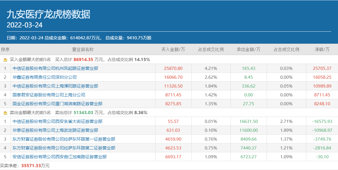 当日公布的龙虎榜数据显示,九安医疗买方前五中有四个席位均被知名游资常用席位所占据,“阵容”可谓十分豪华。