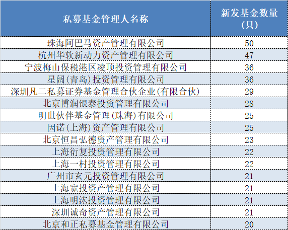 不过,从备案产品数量超过20只的私募数量来看,今年一季度上榜的私募仅有16家,远低于去年同期的27家。