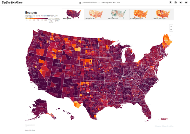 美国发布疫情报告,整个美国全紫了(图源:纽约时报)