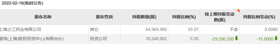 解除限售前夜,就有之江生物股东启动减持计划。1月17日公告显示,磐信(上海)股权投资中心(简称“磐信投资”)直接持有上市公司股份3945.42万股,占公司总股本的20.26%;拟在未来半年内减持其所持股份合计不超过9,735,218股,即不超过公司股份总数的5%。但到2月11日,该机构所持股份已通过大宗交易减少到1024.8万股,持股比例降至5.26%;期间累计减持股份数2920.62万股,累计套现约12.75亿元。