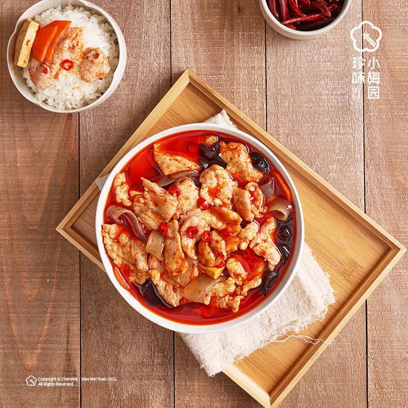 而珍味小梅园以“将餐厅级美味搬进消费者冰箱”为理念,注重菜品和口味的丰富性,为平价美味的大众消费群体提供水晶荷叶鸡、黑椒牛柳、宫保鸡丁等50+款预制菜品,为厨房增添新选择。