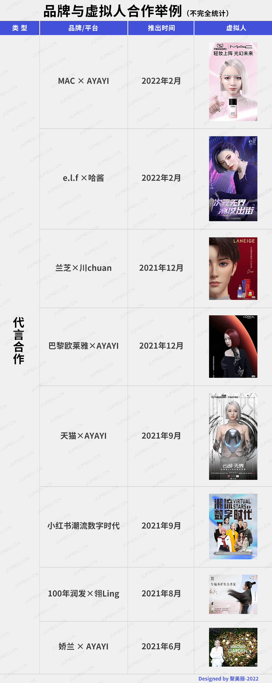 另一方面,虚拟人不需要休息,可以随时随地出现。而品牌们注意到这一点,在直播间上纷纷用上虚拟主播(具体可看聚美丽往期文章《24小时不眠的“李佳琦们”》)。虚拟主播可以24小时不知疲倦地全天候直播,在时长与GMV一定程度上直接挂钩的直播带货中发挥了巨大的作用。