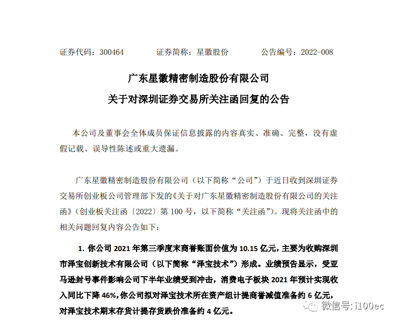 2月21日消息,星徽股份(300464)近日发布《关于对深圳证券交易所关注函回复的公告》。公告显示,截至2021年末,公司旗下泽宝技术因涉嫌违反平台政策被亚马逊平台暂停销售的站点累计为367个,被冻结资金余额折合人民币约3224.92万元。
