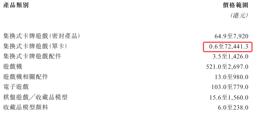 云涌游戏招股书中披露单卡指导价格最大有72441.3元的单卡