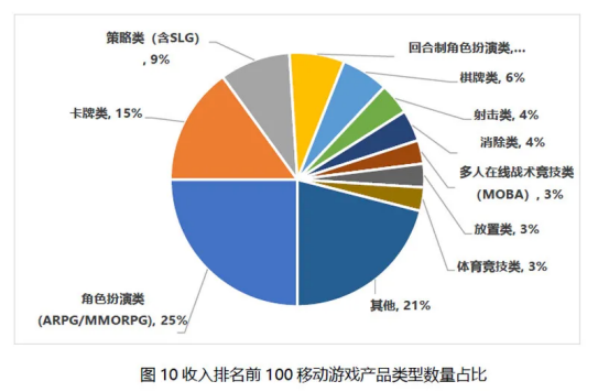 根据《2021年中国游戏产业报告》显示,中国移动游戏收入排名前100的产品中,角色扮演类游戏(泛指ARPG与MMORPG,不包含回合制)是所有产品类型中数量占比最高的品类,几乎吃掉国内1/4的游戏市场。