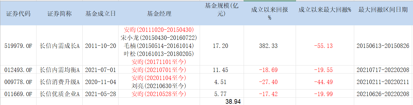 随后,安昀在2015年4月到2016年间短暂“奔私”,但2016年9月后又重新加入长信基金,此后继续管理公募基金。截至离任前,他任长信基金副总经理、投资决策委员会执行委员,共管理长信内需成长、内需均衡、消费升级、优质企业等四只基金,合计管理规模为38.94亿元。