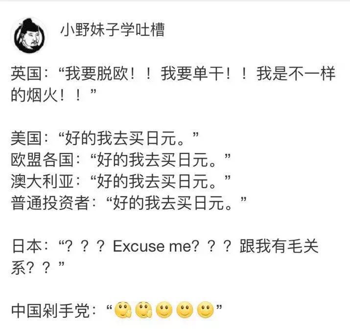 剁手党们只能眼睁睁看着英镑止不住地跌,而日元呼呼地涨: