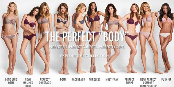 2014年的维密广告上,维密天使们身着内衣的图像配以“完美的‘身材’”(The Perfect‘Body’)的广告语,也被众多独立女性所诟病。
