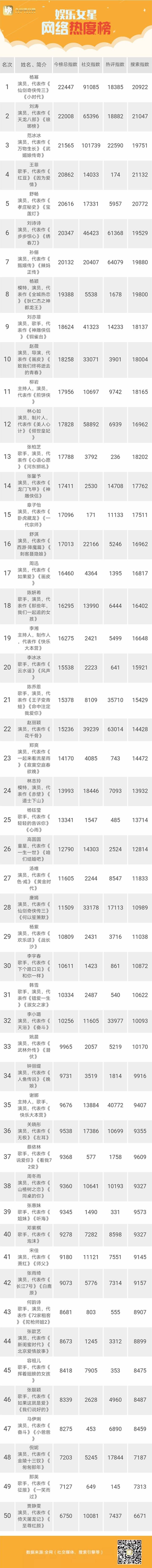 大家好。看到本期的女明星网络热度榜,我想跟大家讨论一个话题:到底什么算“美”?