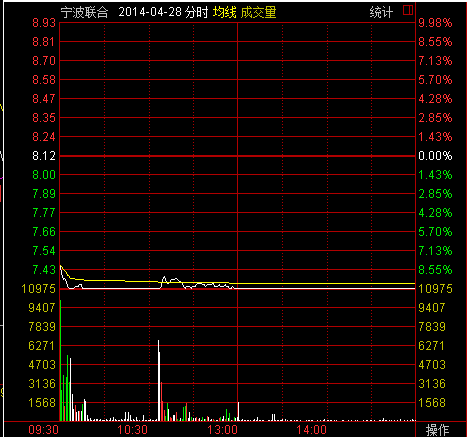 高转送瞬间引爆行情,宁波联合4月9日一字涨停,第二天继续大涨8.66%,创出历史新高。后泽熙高转送建议未能在宁波联合股东会上通过,到4月28日消息一出,宁波联合便被跌停。