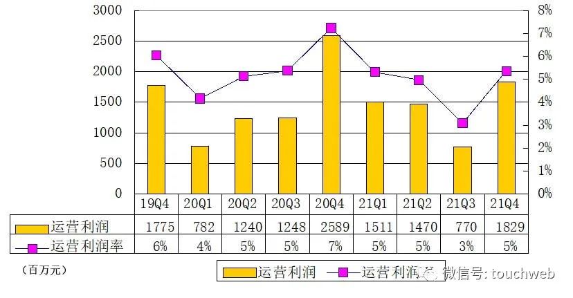 唯品会2021年第四季度运营利润为18亿元,运营利润率为5.4%。