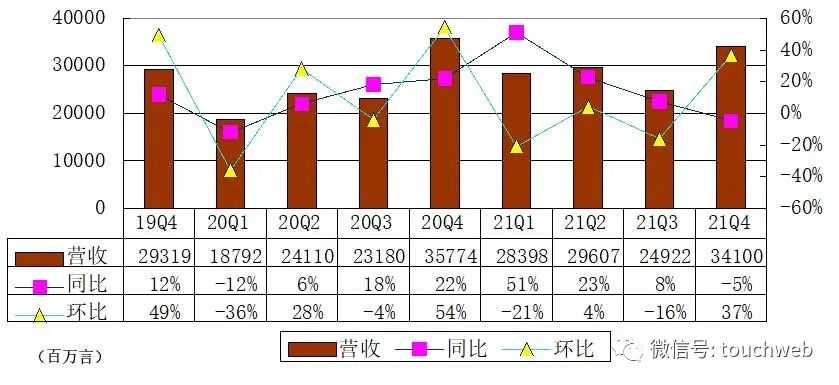唯品会2021年第四季度营收为341亿元(约54亿美元),较上一季度的249亿元增长37%。