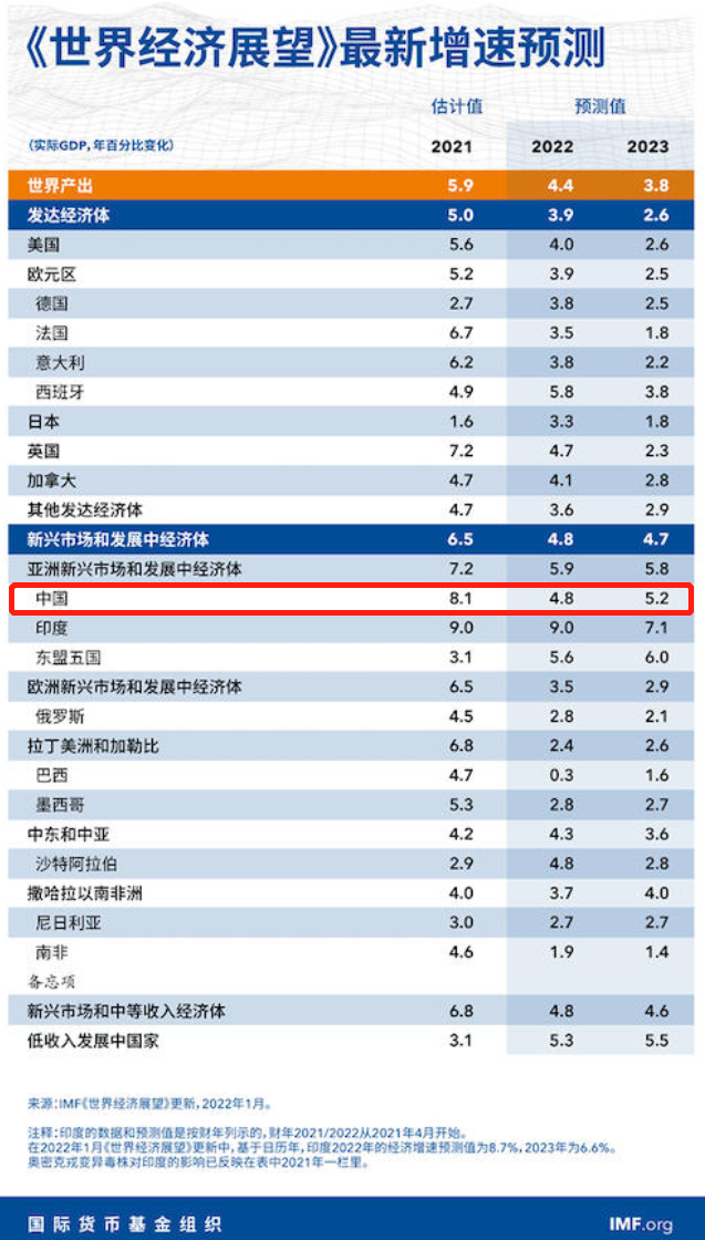 1月28日,国际货币基金组织(IMF)发布了与中国的第四条款磋商报告。该报告将中国在2022年经济增长预期从之前的5.6%下调至4.8%,并提到,消费复苏乏力是IMF降低对中国2022年增长预期的主要原因之一。